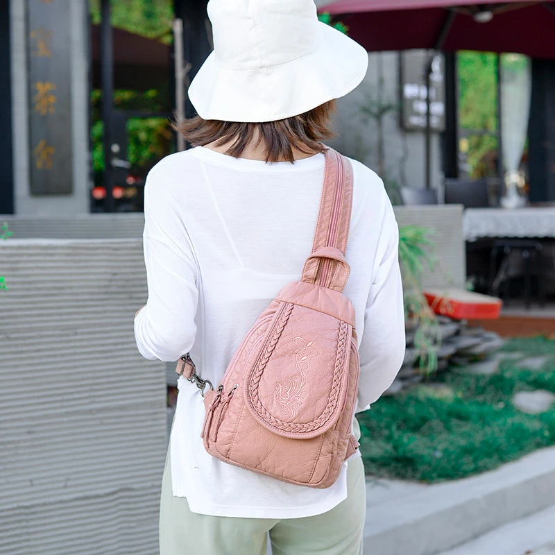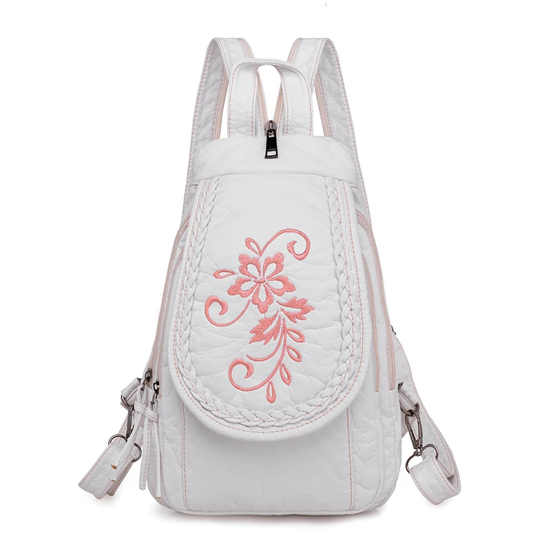 Good Product 3-in-1 Women Flowers Leather Backpacks High Quality Travel Bagpack Ladies Sac A Dos Female Leather